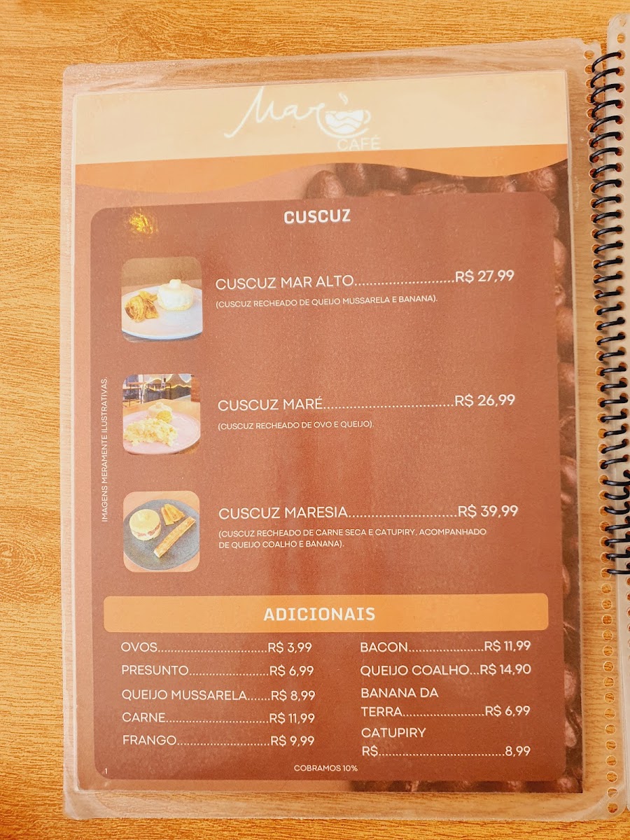 Customer reviews highlight the café's tapioca and cuscuz, both praised for their wonderful taste and quality. The cuscuz with carne seca, queijo coalho, and banana-da-terra stands out for its perfect balance of texture and flavor. Don’t miss their cocada de forno with a hint of orange, which has won hearts among visitors.